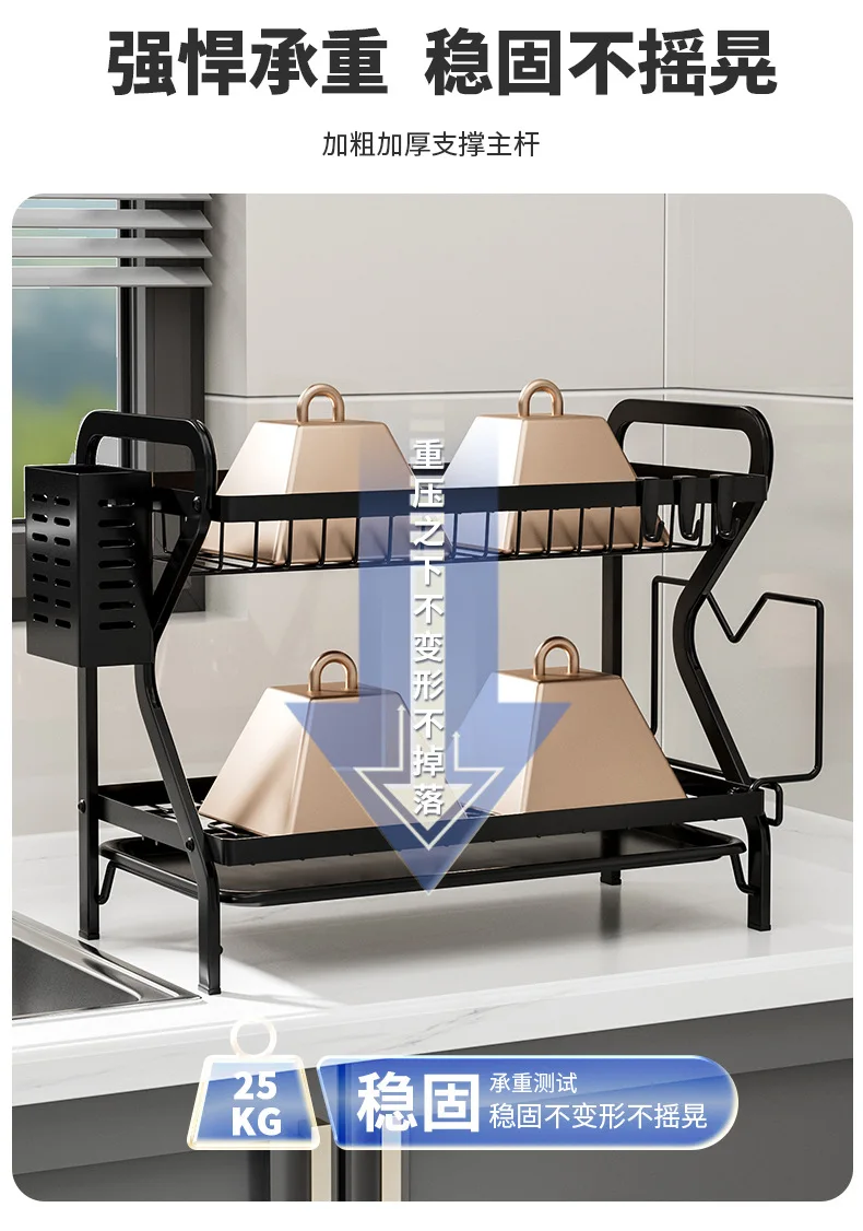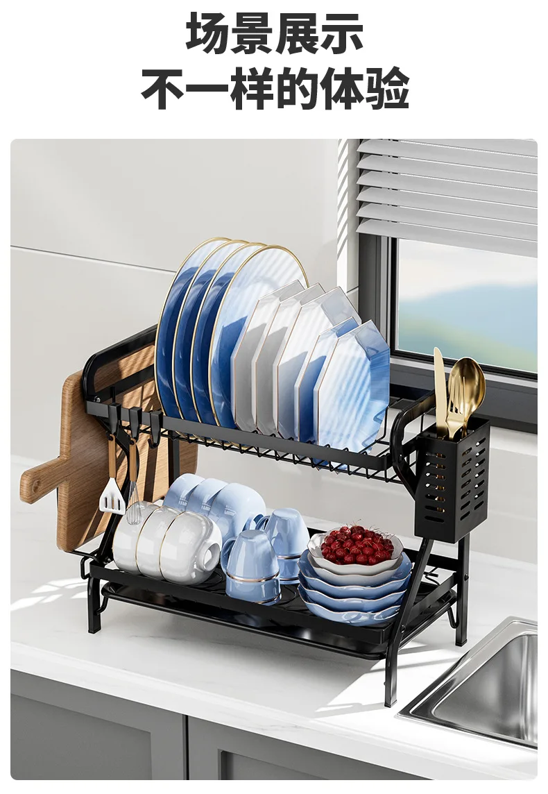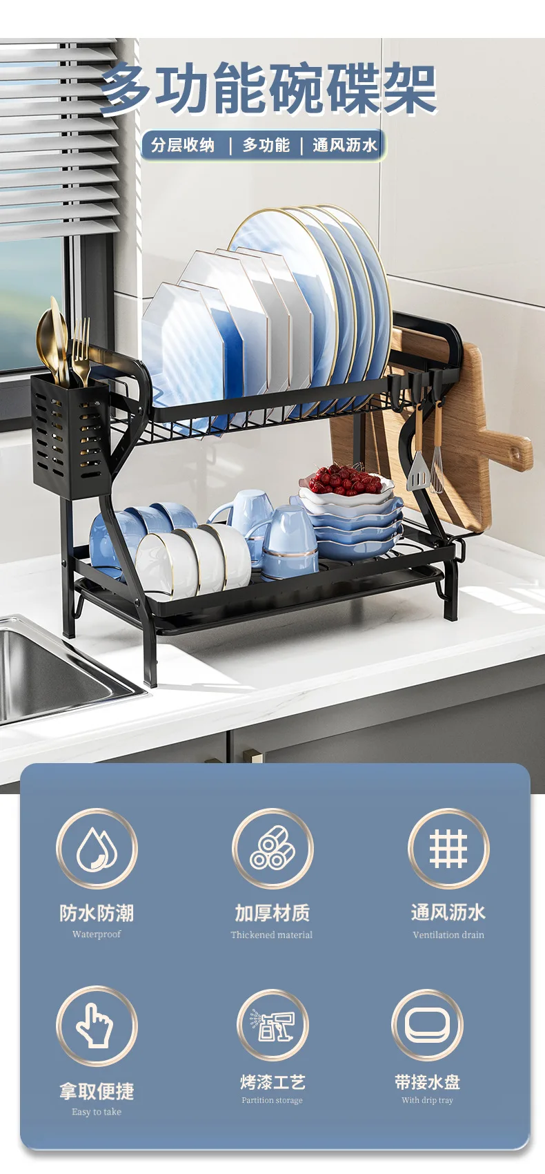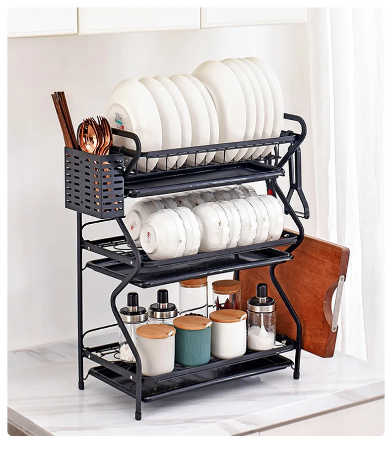 2-3Tier with Drainboard Dish Rack Large Capacity Household Tray Box Basket Saving Space for Small Kitchen Countertop