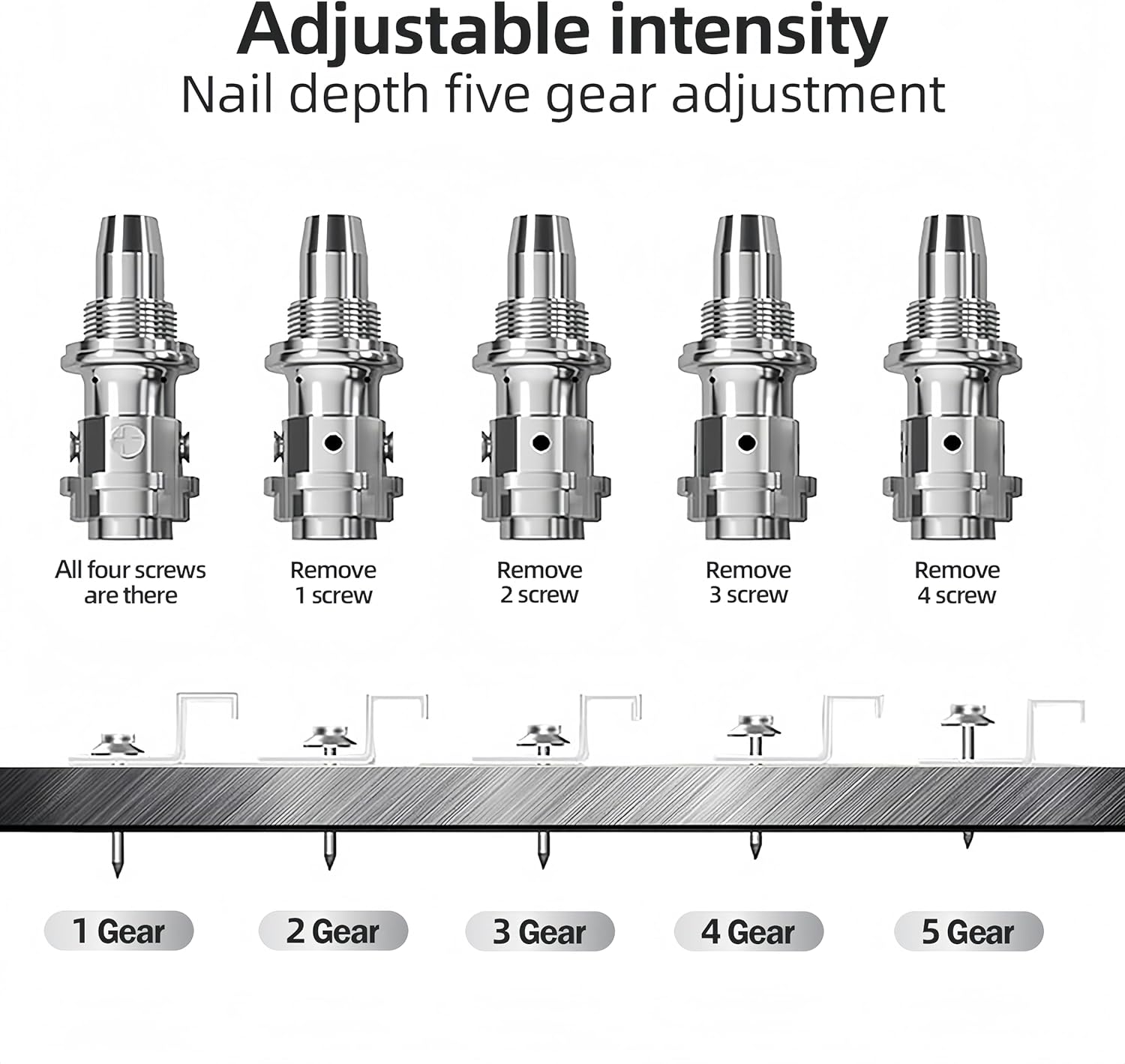 Can penetrate a wide range of materials including steel, wood, concrete floors and walls. One-step of the nailer can pierce the steel plate within 1 second.
