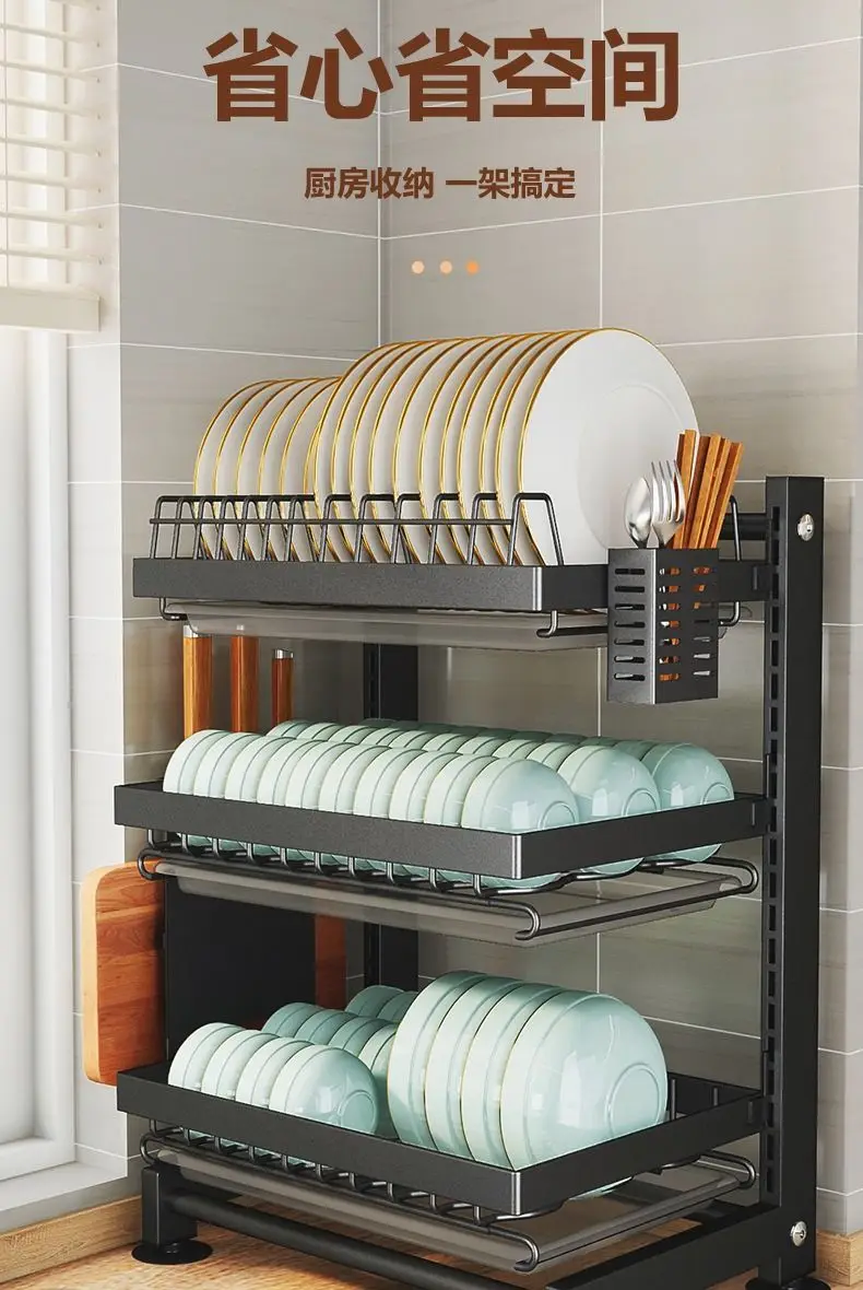 Kitchen Drainage dishes adjustable floor height multi-layer table top multi-functional knife rest chopsticks tube storage rack.
