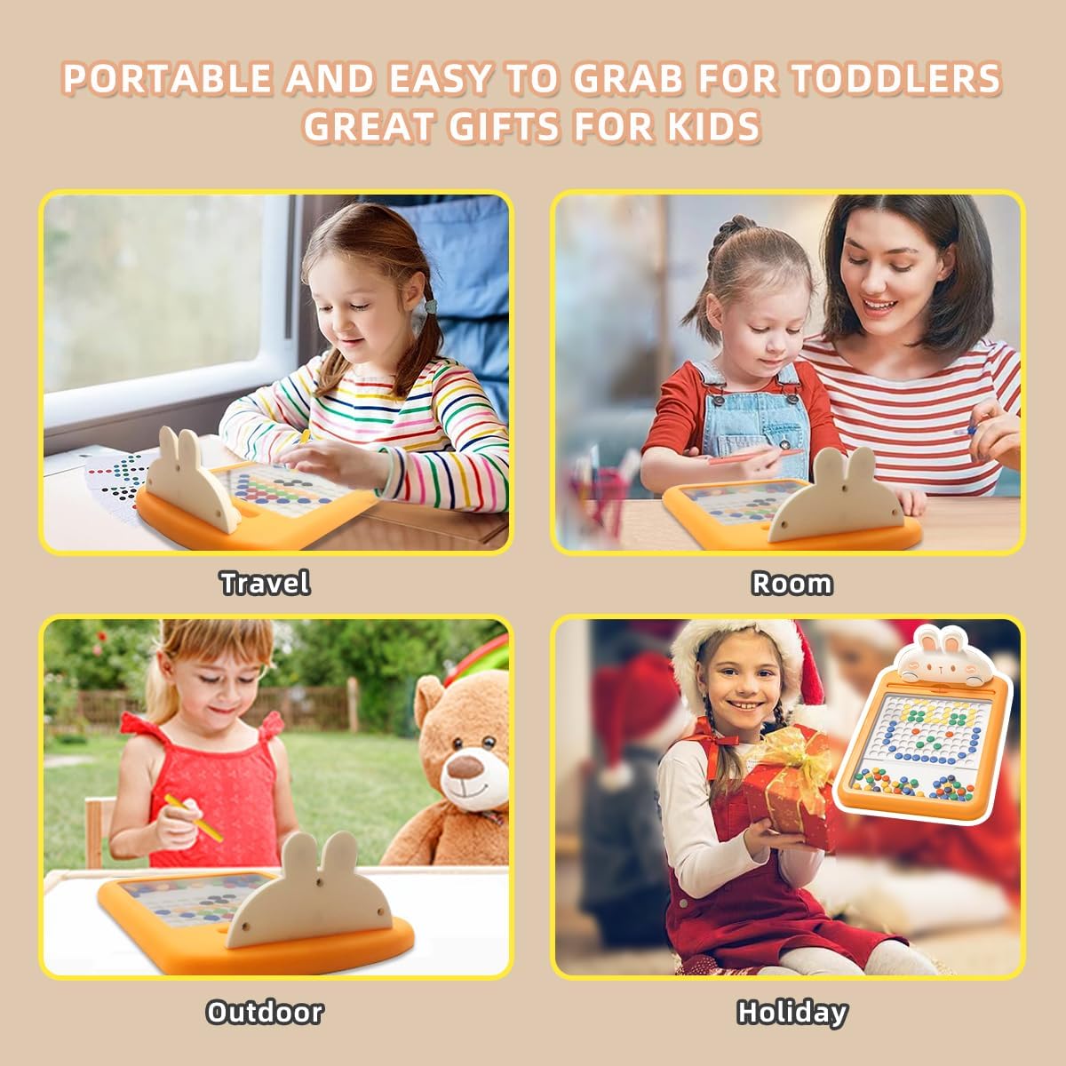 This Magnetic Drawing Tablet introduces children to the wonderful world of drawing! Imagine that on a sunny afternoon, children are happily splashing colors at home or outdoors, exploring the infinite charm of art. The combination of fully sealed colored magnetic beads and magnetic pen allows children to practice fine motor skills while drawing patterns. This economical magnetic drawing tablet becomes the best art friend for kids!
