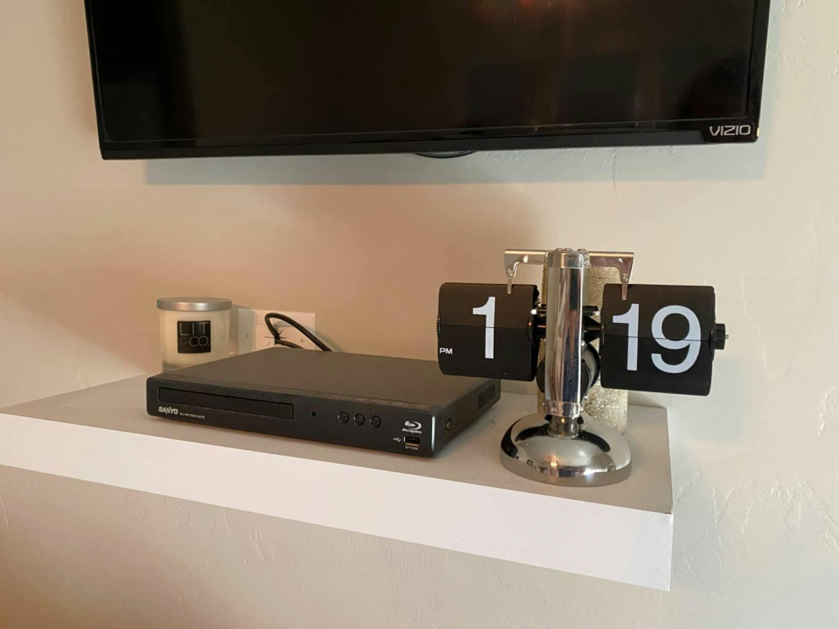 The styling of this clock is so fun! I love the large numbers! It’s easy to see across a room. Really cute and so far keeps time well.